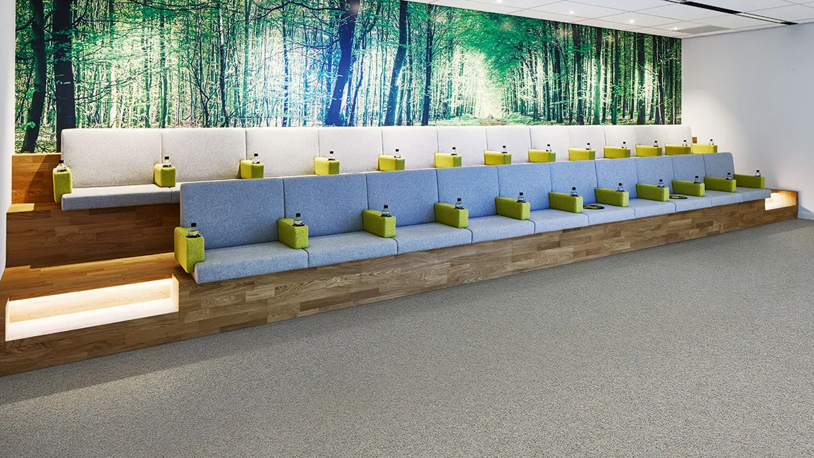 Forbo Akzent, 80% poliamid ve 20% polipropilen elyaf (500 g / m2 elyaf ağırlığı) kombinasyonundan üretilen üstün performansı.